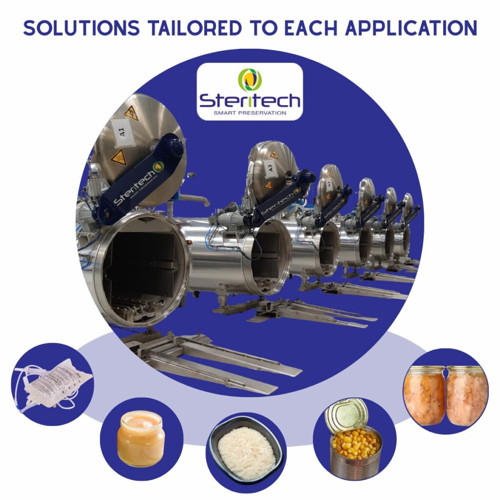 Bei Steritech entwickeln wir Lösungen für die Pasteurisierung und Sterilisation im Autoklaven, die sich an eine Vielzahl von Produkten und Märkten anpassen können.